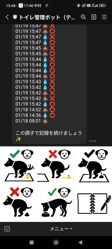 そこで今回、「LINEでポチッと押すだけで記録できるツール」を自作してみました! まだ実験段階のシンプルなものですが、今のままでも日々の記録用として便利に使っていただけると思います。